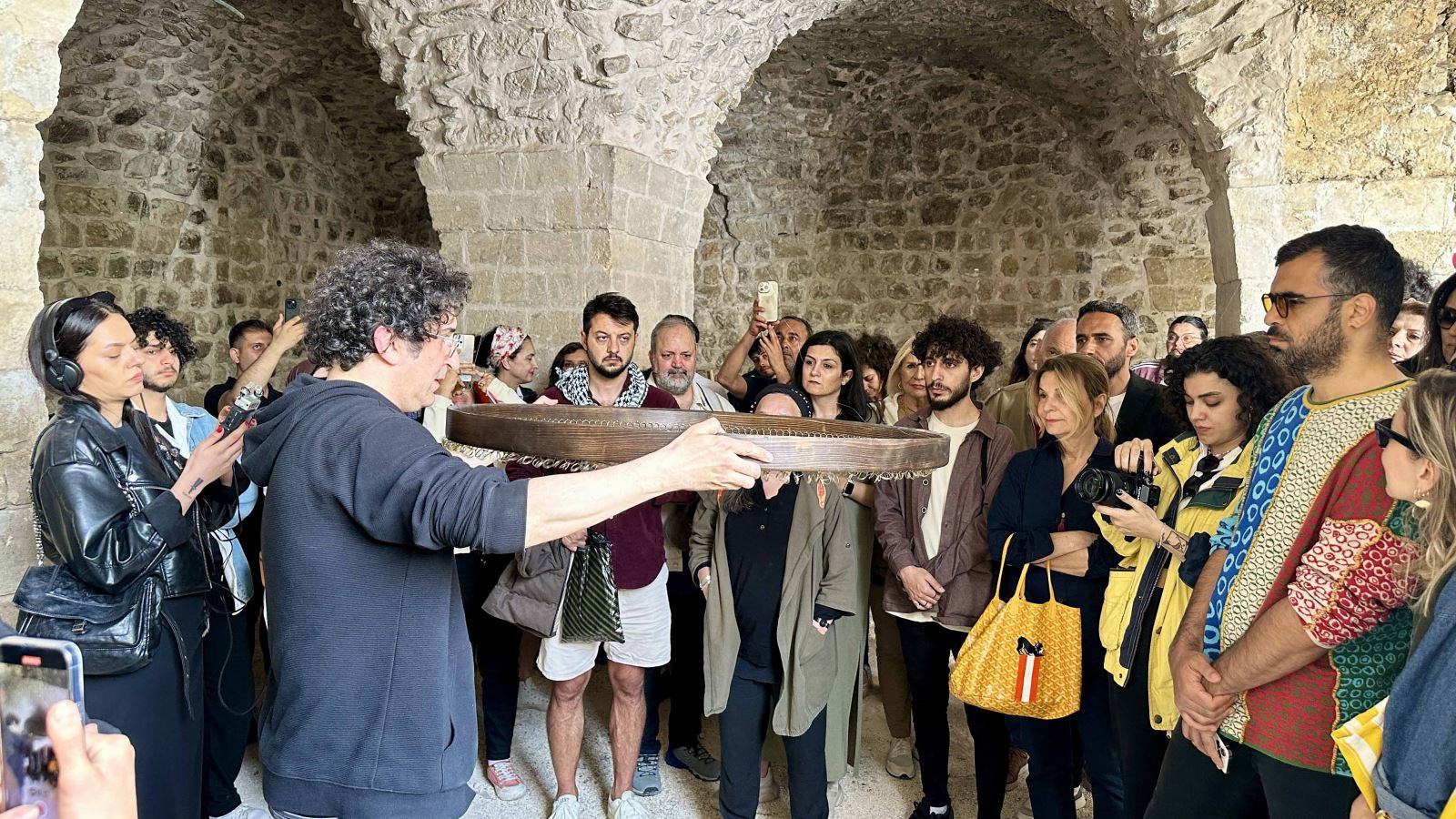 Mardin Bienali’ndeki durak noktalarindan, Develi Han olarak isimlendirilmis binadaki genis mekândan yola çikarak ilk taslaklarini üretttigimiz kare ve demir defler de derisiz def ailesinin yeni üye adaylaridir. Bu nesnelerin bitmis hallerini, geçici olarak yeniden kurduklari bu suskun mekânin geçmisi ve gelecegi ile birlikte tahayyül etmeye çalisabiliriz.